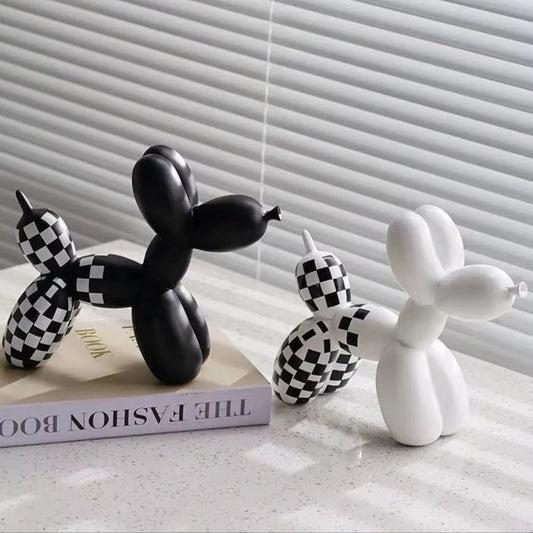 Balloon Dog - Scultura Decorativa in Resina con Motivo a Scacchi, Bianca e Nera, per Casa e Ufficio
