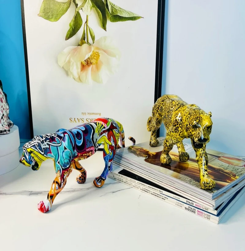 Abstract Resin Leopard Statue Africa Wildlife Panther Figurine Animal Sculpture Modern Home Desktop Office Decoration