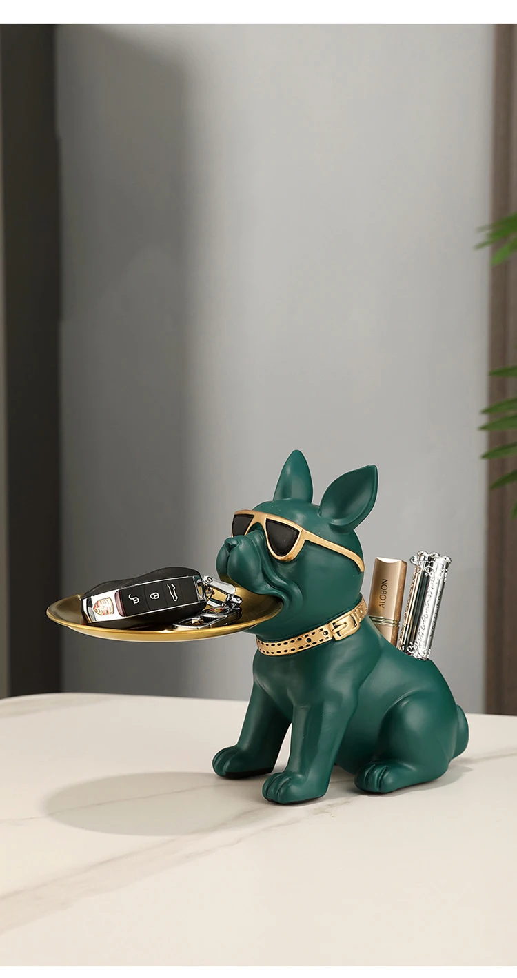 Bulldog Green Key Holder - Dog Decor with Tray | Multifunctional Resin Decorative Piece