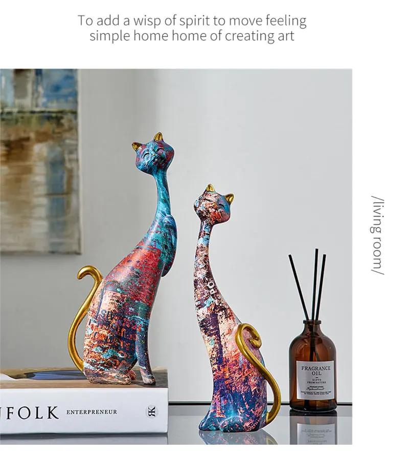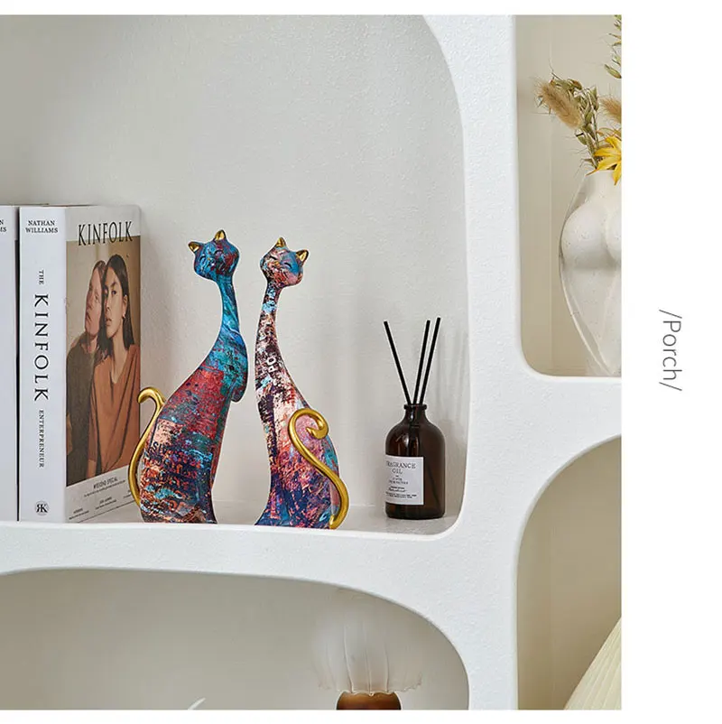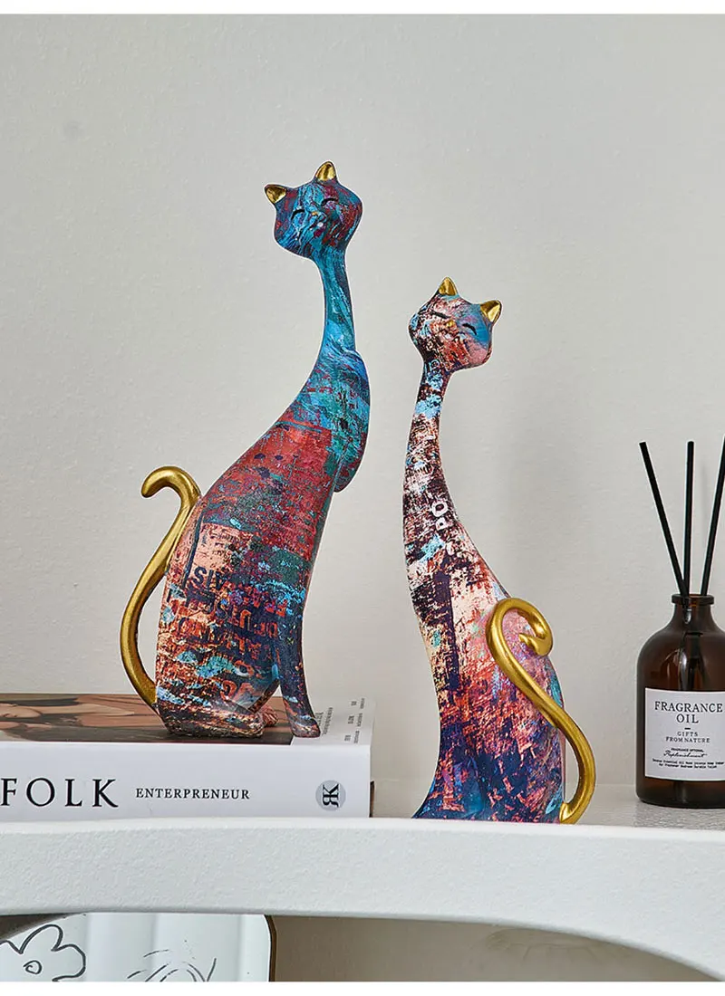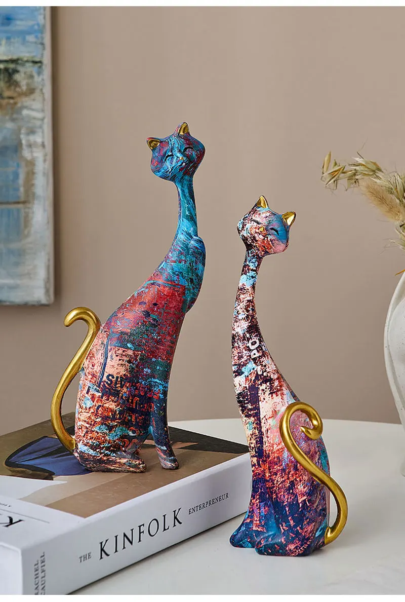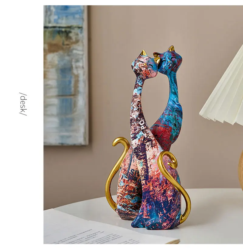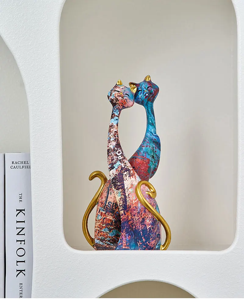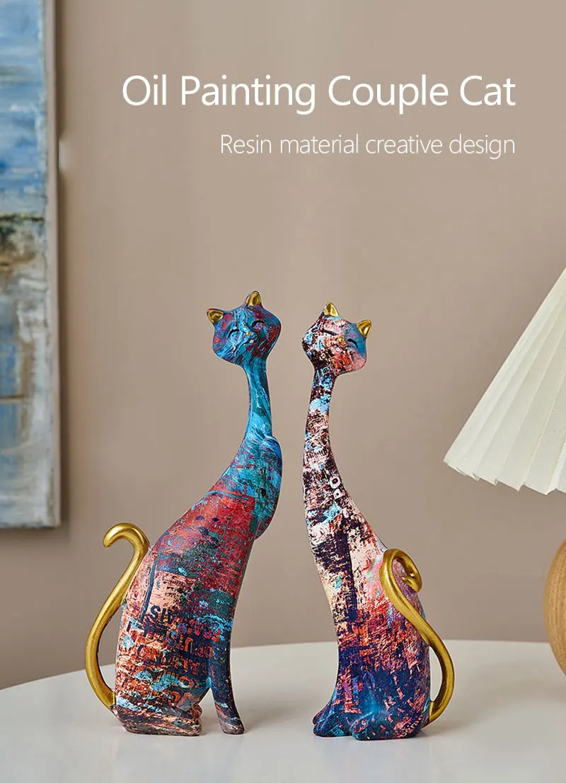 Resin Painted Graffiti Lovers Cat Figurines Couple Animal Ornaments European Home Interior Study Bedroom Decor Items