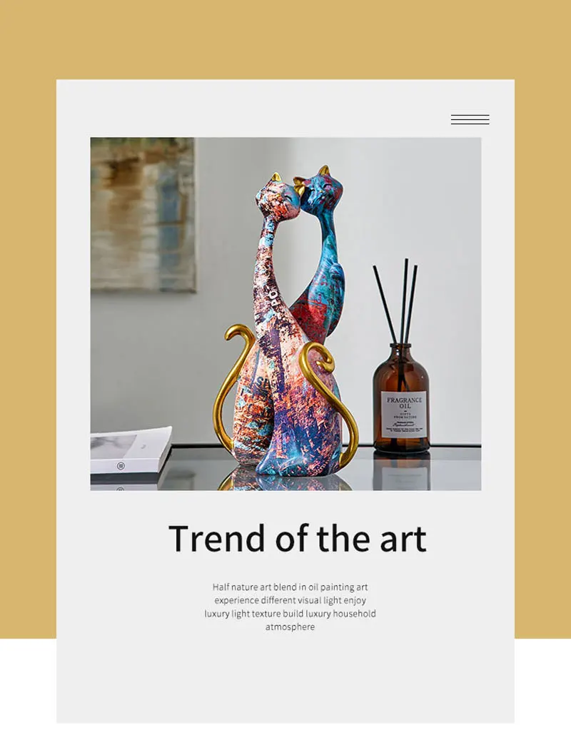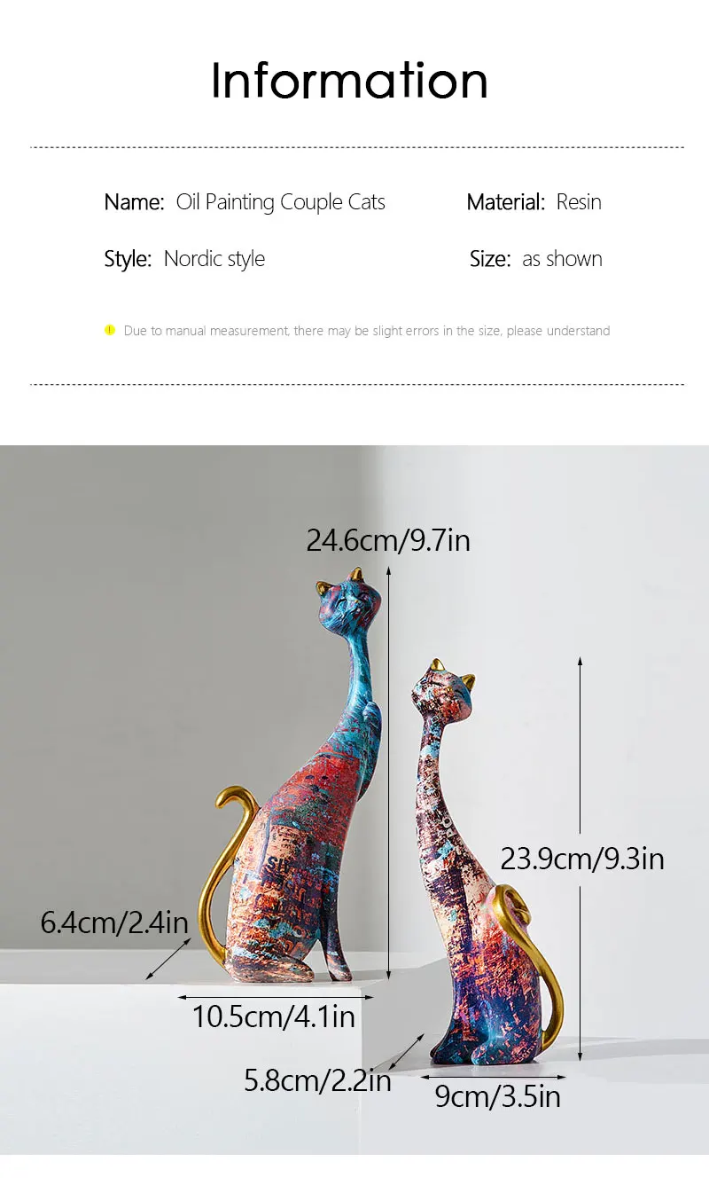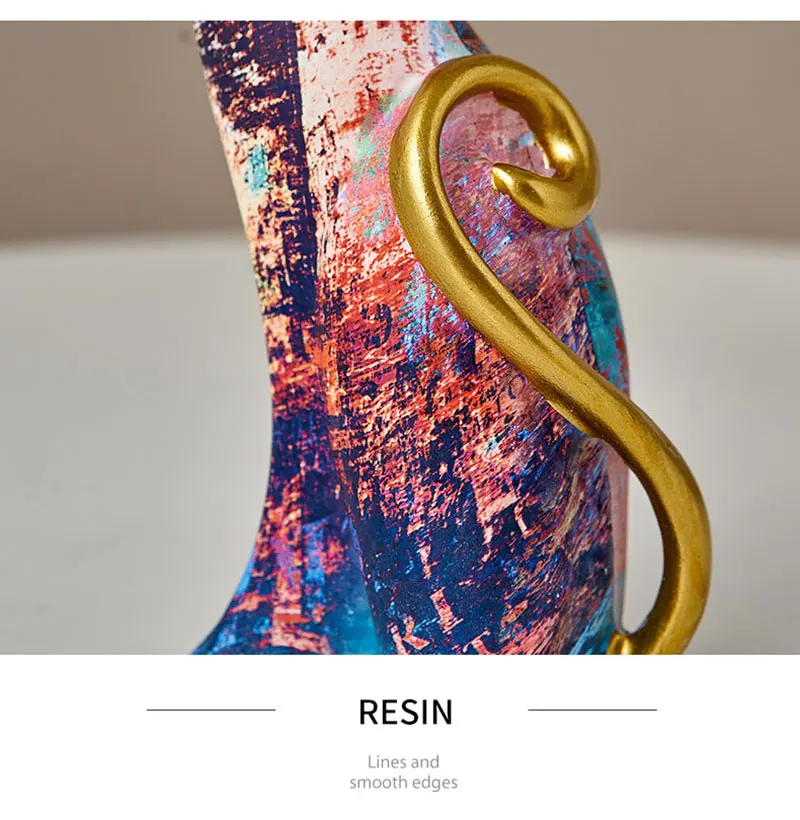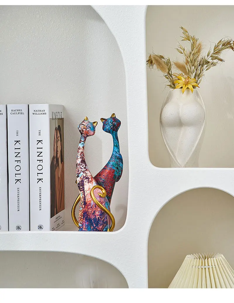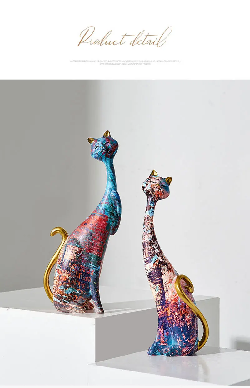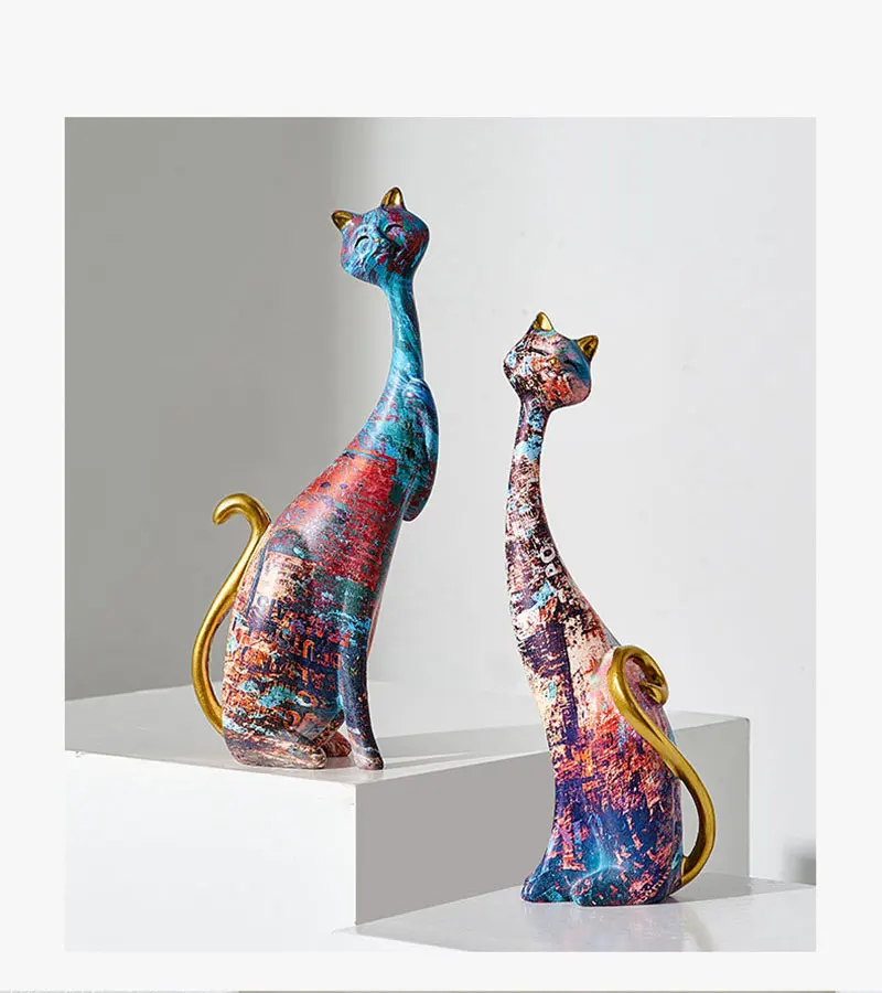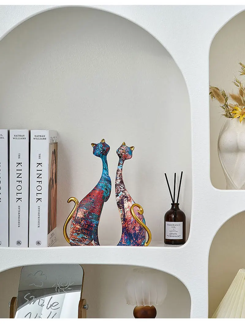 Resin Painted Graffiti Lovers Cat Figurines Couple Animal Ornaments European Home Interior Study Bedroom Decor Items